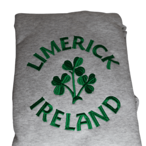 Choose from Grey or Emerald Bottle Green colours. These Hoodies are a must for anyone with a connection to Limerick, Ireland. Unisex fit.